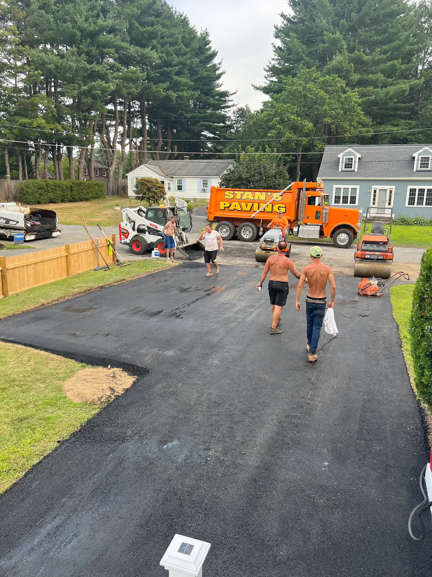 We generally recommend waiting at least 24 to 48 hours before driving or parking on a newly paved surface. During extreme summer heat, you may want to wait an extra day to ensure the asphalt has fully cured and hardened to prevent tire scuffs or indentations.